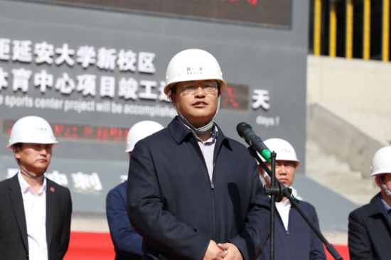 延安大學(xué)黨委委員、副校長楊偉宏致辭,他代表延安大學(xué)全體師生向疫情期間奮戰(zhàn)在一線的施工人員及陜建集團(tuán)表示衷心感謝,對十三建公司承建的延大體育中心項(xiàng)目建設(shè)給予充分肯定。他指出,延安大學(xué)體育中心項(xiàng)目作為十四運(yùn)重點(diǎn)建設(shè)項(xiàng)目,意義重大。當(dāng)前,項(xiàng)目建設(shè)進(jìn)入60天倒計(jì)時,希望全體參建人員從延安精神中汲取力量,大力弘揚(yáng)愛崗敬業(yè)、艱苦奮斗的勞模精神,進(jìn)一步統(tǒng)一思想,提高認(rèn)識,鼓足干勁,用一流的速度,一流的品質(zhì),展現(xiàn)陜建集團(tuán)的國企風(fēng)采和責(zé)任擔(dān)當(dāng),為第十四屆全運(yùn)會順利召開貢獻(xiàn)力量。