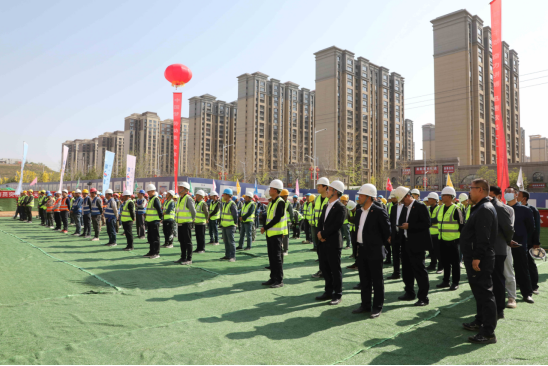 4月30日,陜建十三建公司延安大學(xué)新校區(qū)體育中心項(xiàng)目“大干60天,助力十四運(yùn)”勞動競賽啟動儀式順利舉行。