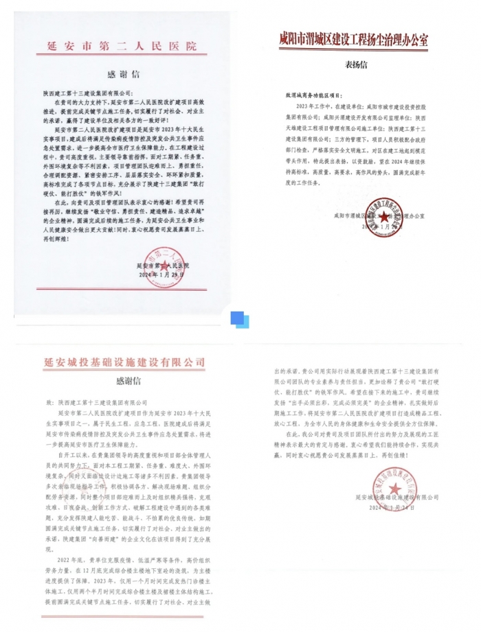 以?誠信獲贊譽(yù)!集團(tuán)兩項(xiàng)目收到建設(shè)單位感謝信、表揚(yáng)信!